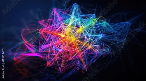 © julio, Obraz premium Abstract Colorful Geometric Design With Glowing Particles