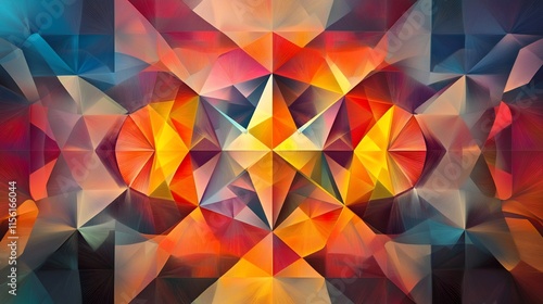 Obraz premium Abstract colorful geometric low poly background with vibrant triangles and symmetrical pattern.