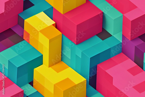 © Hamburn, Naklejka premium abstract colorful geometric pattern with blocks wallpaper background banner