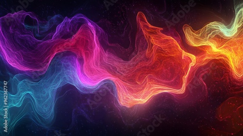 © Wish Craft Arts, Fototapeta premium Abstract colorful glowing waves with a dark background.
