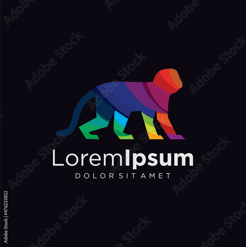 © blueberry 99d, Obraz premium Abstract Colorful gradient monkey Logo primate langur ape vector template flat design illustration