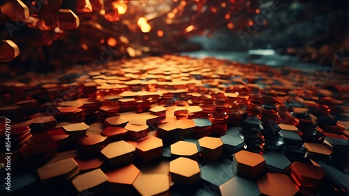 © Mst, Obraz premium Abstract colorful hexagons. Concept. 3D render