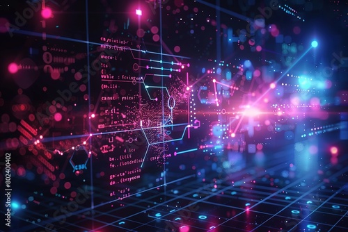 Fototapeta premium Abstract colorful image of an abstract glowing pink blue neon graphic data...