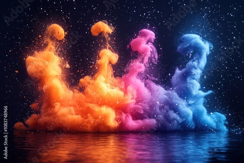 © upnowgraphics, Obraz premium Abstract Colorful Ink Swirls with Glitter in Water