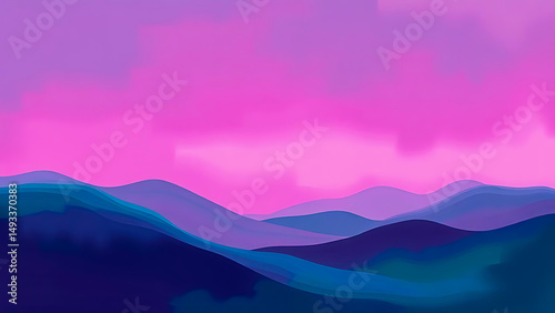 © Vectorshaper, Obraz premium Abstract colorful landscape view shows a rainbow over misty mountains at dawn