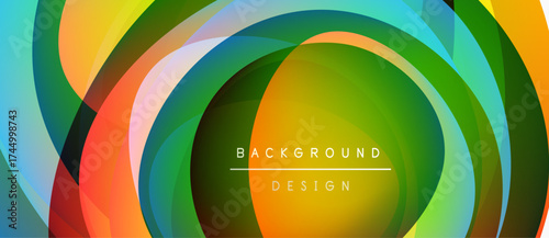 © antishock, Fototapeta premium Abstract colorful layers create dynamic circular design. Text reads background design centered within composition. Vibrant hues dominate visual space.