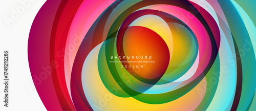 © antishock, Obraz premium Abstract colorful layers create dynamic circular pattern. Vibrant hues blend, forming mesmerizing visual effect. Modern design element.