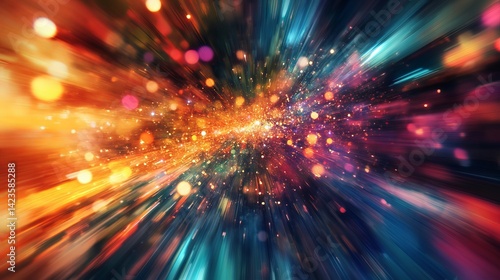 Fototapeta premium Abstract colorful light burst background with vivid sparkling bokeh red dark blue gold speed shiny