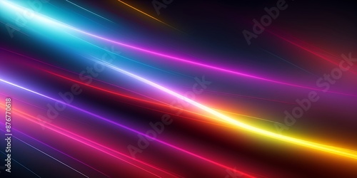 Fototapeta premium Abstract colorful light lines against a dark background, speed and motion of light spread, curved neon lines