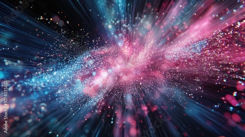 Naklejka premium Abstract colorful light streaks and particles radiating outward from a...
