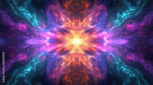 Obraz premium Abstract colorful nebula with bright light in the center.