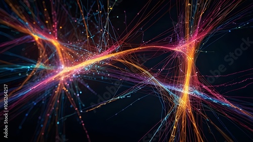 © Nadir, Naklejka premium Abstract Colorful Optical Fibers Connecting To Other Networks. Electrical Signals Flowing Inside Of Complex Network Generative AI