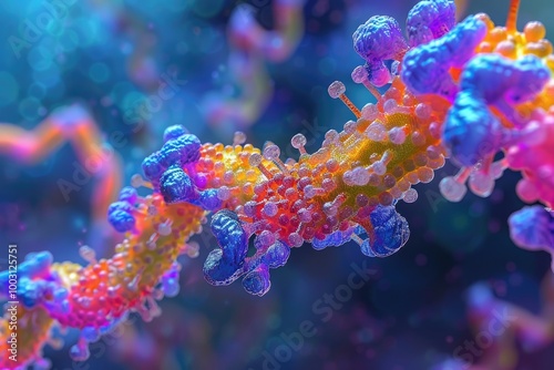 Naklejka premium Abstract colorful organic structure with spiky protrusions resembling a...