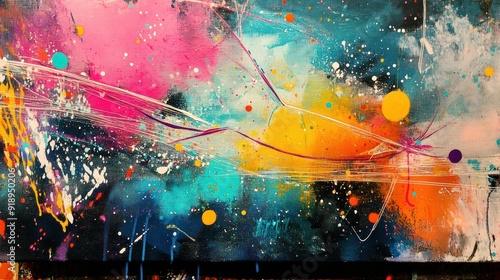 © Rere_Art151, Naklejka premium Abstract Colorful Painting with Splashes and Lines
