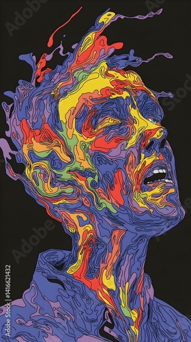 Naklejka premium Abstract colorful portrait of a person's face and torso, with swirling,...