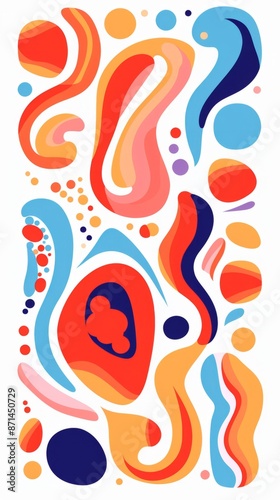 Obraz premium Abstract Colorful Shapes Wallpaper With Curved Lines and Dots