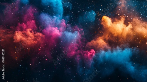 Fototapeta premium Abstract colorful smoke nebula with stars.