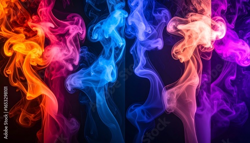 © Bagas, Obraz premium Abstract colorful smoke patterns on black background