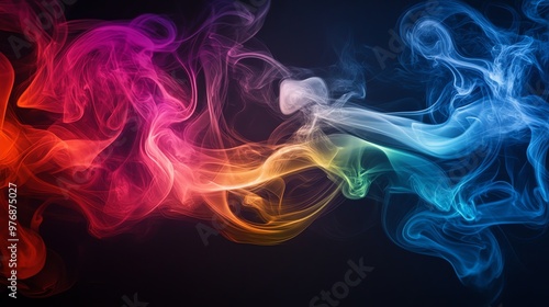© Galib, Obraz premium Abstract colorful smoke swirls against a black background.