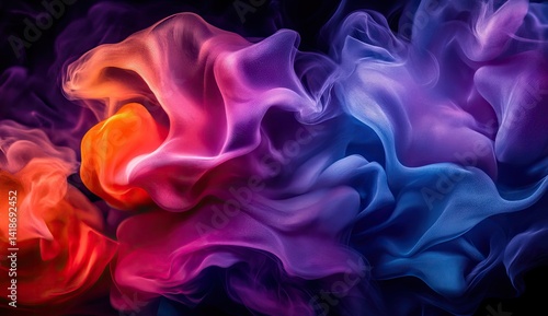 © Kasim, Obraz premium Abstract colorful smoke swirls on black background.