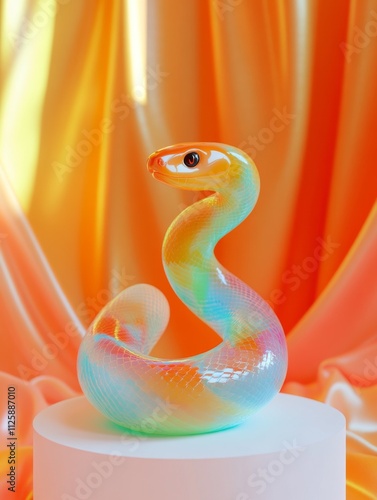 Fototapeta premium Abstract colorful snake sculpture placed on a glowing surface