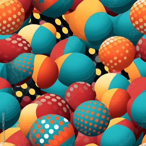 © patternworld, Obraz premium Abstract Colorful Sphere Pattern with Dots and Stripes