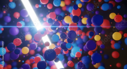© Morooccan, Naklejka premium Abstract Colorful Spheres Light Streaks Particle Background Animation Loop