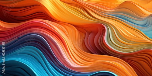 © popuo design, Obraz premium Abstract Colorful Swirling Waves Digital Art Background Fluid Design Texture