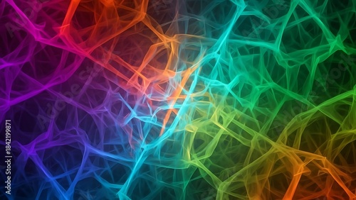 © Emongrapic, Obraz premium Abstract colorful tangled lines background with vibrant neon fractal network
