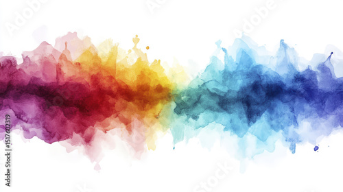 © Abulkhair, Fototapeta premium Abstract colorful watercolor gradient flows horizontally from red, yellow to blue on a white background