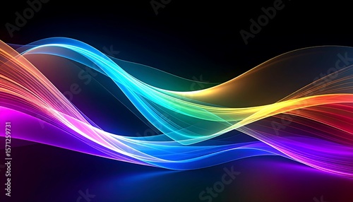 © Big, Naklejka premium Abstract Colorful Wave Forms on Dark Background