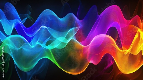 © arsya, Obraz premium Abstract colorful waves creating a vibrant visual effect against a dark background.