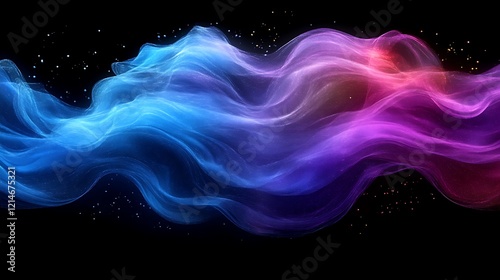 © Santi, Obraz premium Abstract colorful waves, dark background, design element.