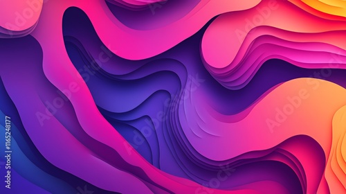 © oki, Obraz premium Abstract Colorful Waves Papercut Design