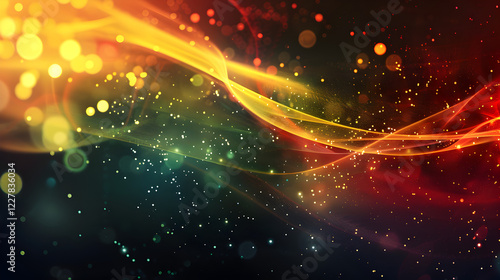© rizkan, Fototapeta premium Abstract colorful waves with light particles creating a vibrant digital background.