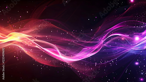 Obraz premium Abstract colorful waves with sparkles on a dark background, creating a...