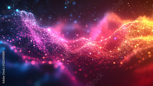 © HQAsset, Obraz premium Abstract Colorful Wavy Lines Background with Connected Dots