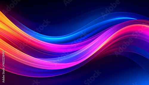 © Dian, Obraz premium Abstract Colorful Wavy Lines Flowing Across Dark Blue Background, Artistic Design.