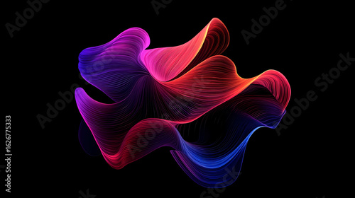 © city of pictures, Obraz premium Abstract Colorful Wavy Lines Flowing on a Dark Background - Dynamic and Vibrant Art