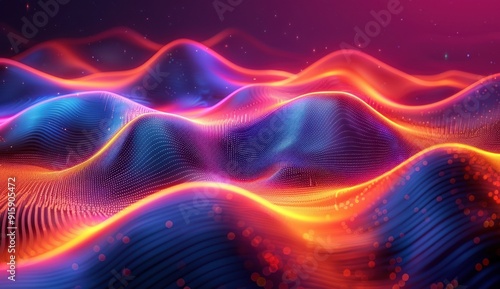 © kiki__, Obraz premium Abstract Colorful Wavy Pattern with Glowing Lights