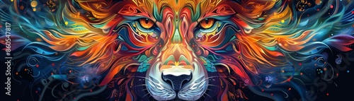© ชลธิชา สว่างวงค์, Naklejka premium Abstract colorful wolf with glowing eyes.