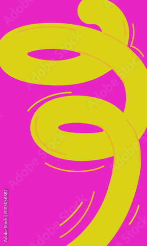 Fototapeta premium Abstract composition. A yellow curly line on a bright pink background.