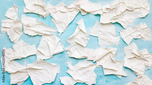 Obraz premium Abstract Composition: Crumpled White Paper on Blue Surface