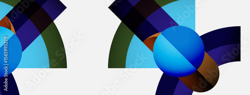 Obraz premium Abstract composition features colorful spheres, intersecting arcs, white...