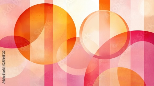 Fototapeta premium Abstract composition featuring vibrant circles and vertical lines in shades of orange and pink.