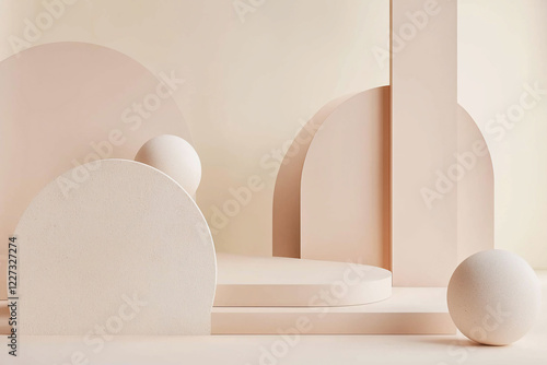 © Adi, Fototapeta premium Abstract composition of soft pink geometric shapes creating a serene environment with subtle textures