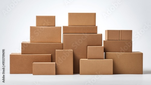 © NutIlah, Obraz premium Abstract Composition of Stacked Empty Cardboard Boxes