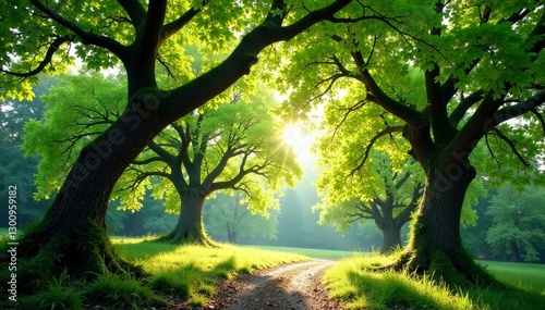 Naklejka premium Abstract composition of twisted tree branches in dappled sunlight, abstract,...