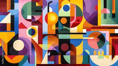 Obraz premium Abstract composition with colorful geometric shapes, bold colors, and a modern aesthetic