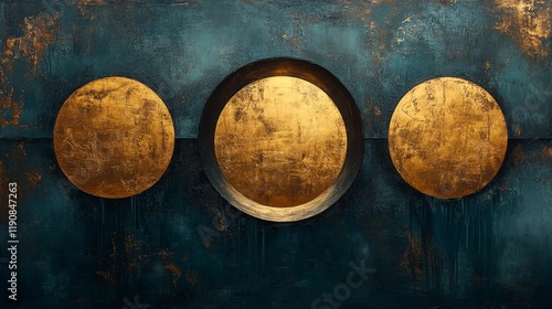 © Alexey, Naklejka premium Abstract composition with metallic gold and teal. Generative AI